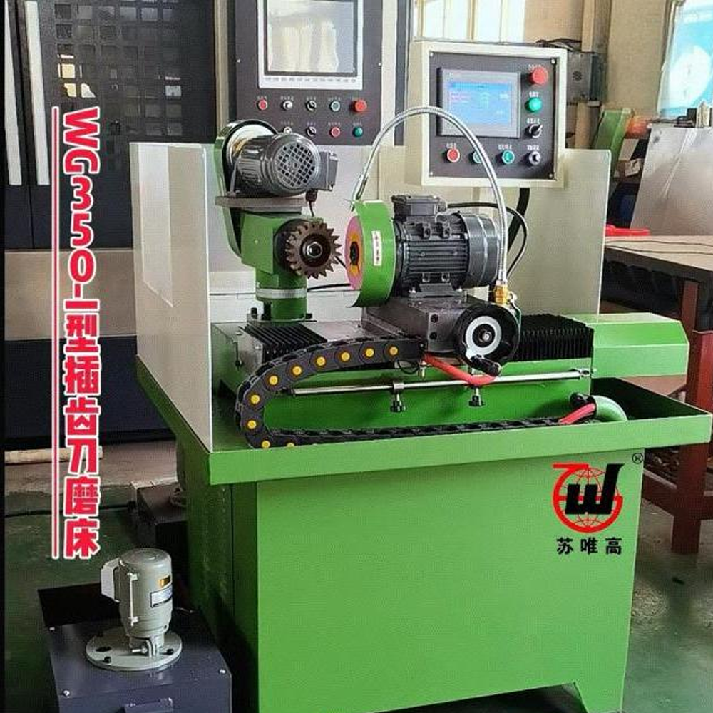 欢迎使用南京唯高生产的 WG350-I 型插齿刀磨床,本设备床身及部件采用球墨铸铁按加工工艺制作,传动部位采用精密直线道轨和滚珠丝杆,保证了机床的修磨精度和长期稳定的机械精度,配置台湾台达控制系统、施耐德电器,长久保持设备的运行工作。该机是用来对盘形插齿刀、碗形插齿刀、锥柄插齿刀的前刃口修磨的专用机床,修磨出的插齿刀刃口的粗糙度、跳动精度可以达到 AA 级标准精度。