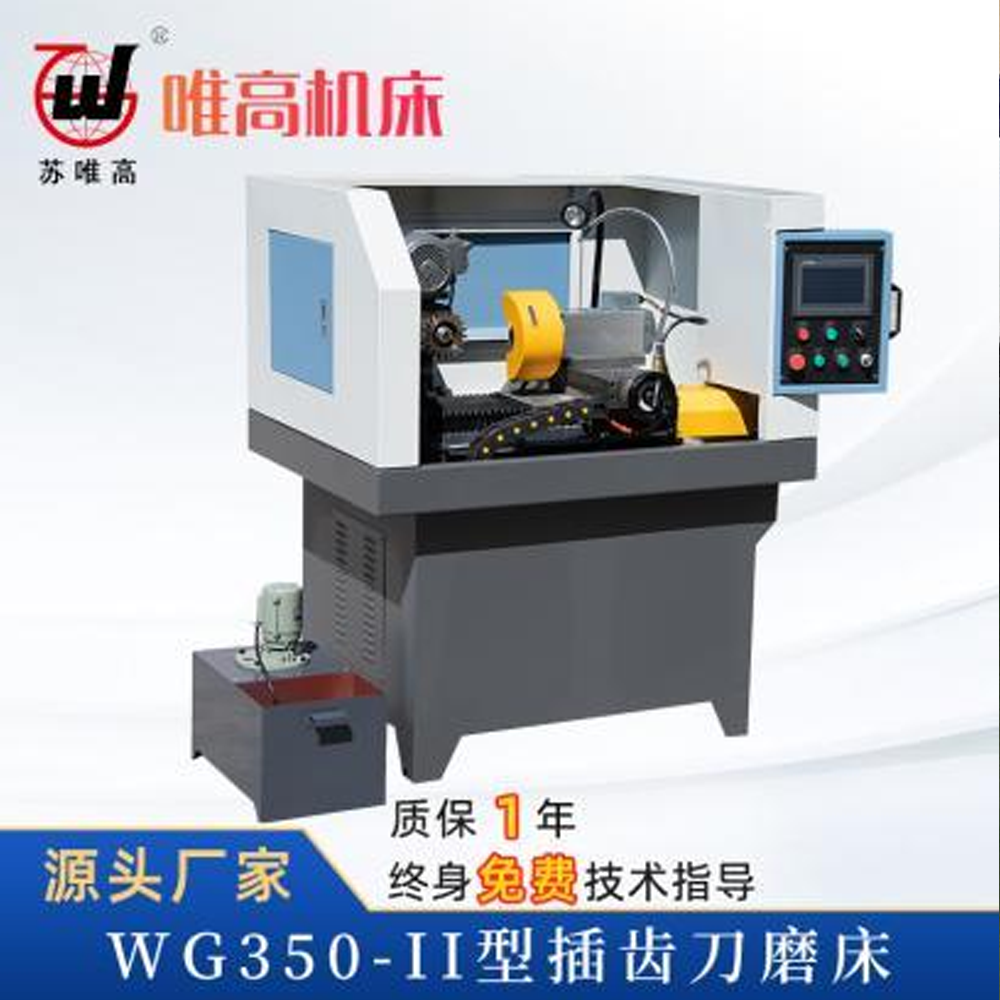 欢迎使用南京唯高生产的 WG350-II 型插齿刀磨床,本设备床身及部件采用球墨铸铁按加工工艺制作,传动部位采用精密直线道轨和滚珠丝杆,保证了机床的修磨精度和长期稳定的机械精度,配置台湾台达控制系统、施耐德电器,长久保持设备的运行工作。该机是用来对盘形插齿刀、碗形插齿刀、锥柄插齿刀的前刃口修磨的专用机床,修磨出的插齿刀刃口的粗糙度、跳动精度可以达到 AA 级标准精度。